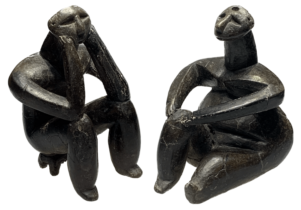 Totuși, atitudinea personajelor poate fi considerată și ca una de tristețe profundă. Bărbatul, răvășit de durere, își apasă obrajii în palme, iar femeia, cuprinzându-și genunchiul, pare că își caută o poziție de apărare în fața nenorocirii. Este doar o speculație, dar arta permite receptorului să ia în stăpânire opera printr-o interpretare personală. Iar o astfel de înțelegere ne apropie de o altă capodoperă neolitică, un vas antropomorf cunoscut ca Bocitoarea de la Parța. E vorba de un vas antropomorf care aparține culturii Banatului[6] și a fost descoperită la Parța, la 20 de km de Timișoara. Uneori este greșit atribuită culturii Tisa[7] și se spune că a fost descoperită la Hodoni, tot în județul Timiș.