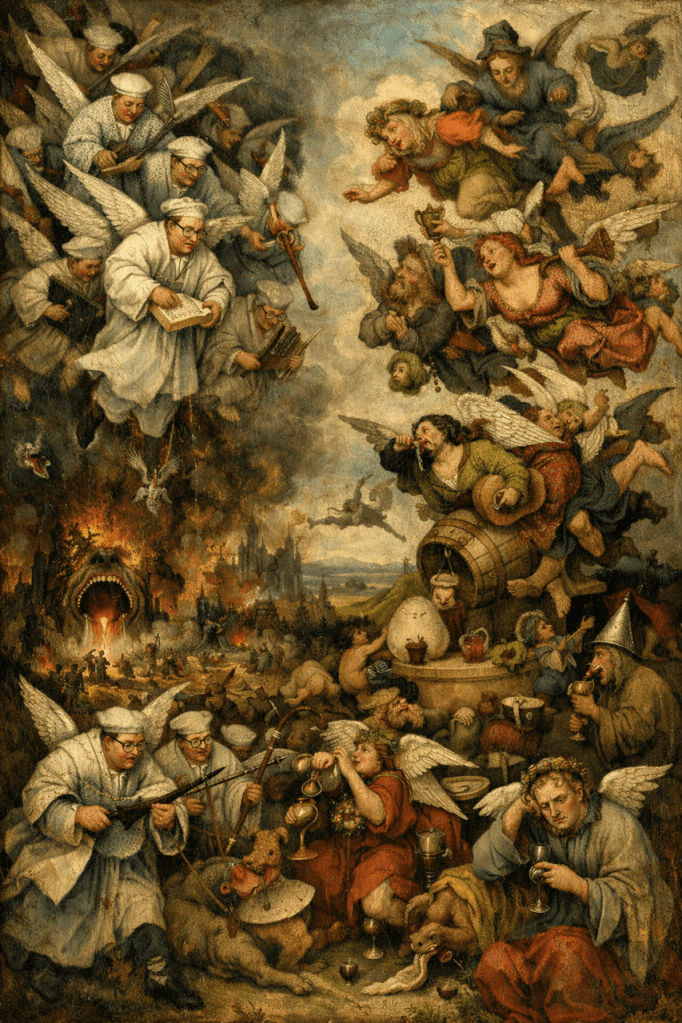 Arta ne obligă să acceptăm că, dacă Dumnezeu există, atunci este în mod necesar o «ființare» sentimentală, iar lucrul ăsta e prea lesne trecut cu vederea de cei care, în ju(i)sările lor de tip (a)gnostic, îl închipuie în mod eronat ca pe un soi de intelectual anxios, fiert în logos, uns cu geometrii, un soi de matematician-inginer cu veleități de mămică-manager, privită din unghiul copilului: azi e Demiurgul cel rău care mă ceartă că nu mi-am mâncat budinca de quinoa, mâine e Demiurgul cel bun — ăla care nu se vede — fiindcă mă lasă pe tabletă când își face unghiile — halal «gnoză» — iar pe urma lui Sf. Petru et al. și Fiul cel judecăcios, ducând la subțiori lista lui Moș Crăciun unde șed înșirați pe scheme și axe: cei care întârzie la serviciu, care cască la utrenie, care fluieră pe nas în biserică, dar mai ales cei care privesc tâmp către cer, de parcă n-ar fi ceva ridicol de serios sus acolo.