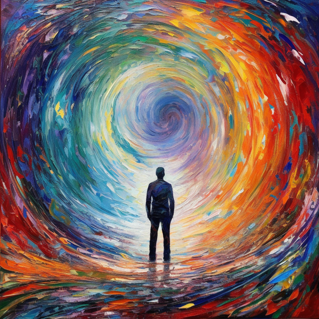 Cele 3 imagini sunt generate cu un generator AI, pe baza descrierilor a trei personaliăți artificiale cărora li s-a cerut să imagineze o pictură despre subiectivitatea omenească