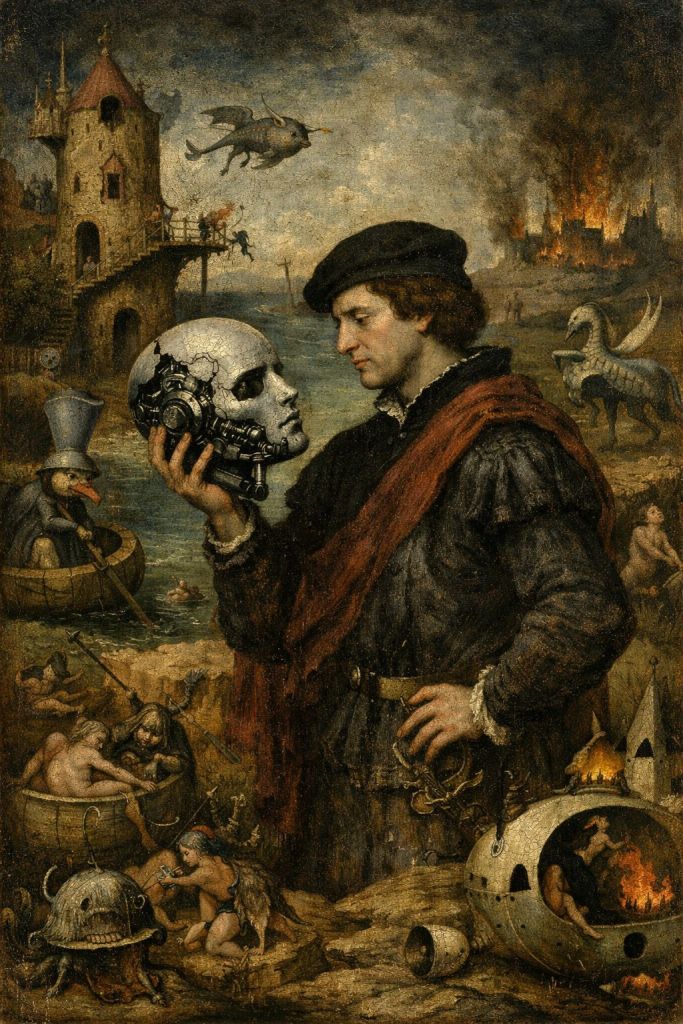 Să lăsăm totuși speculațiile deoparte fiindcă deja ne-am rătăcit pe drumul ăsta șerpuitor al viermelui și bombăn ca un cimpanzeu lovit de neurodivergență la creierii capului, de nici nu mai știu unde vreau să ajung, mai ales că, serios vorbind nici nu știu dacă se poate ajunge. Ori cam așa e cu «omul» cu “o” mic, ăla care chiar există, care țipă și plânge, râde și înjură, emană simfonii sublime și pârțuri amețioare — uneori din foale, alteori din minți — și care în unele cazuri privește acestea și dă în dizenterie cognitivă zicând: ce absurd? Ce contradictriu e omul? Cine oare a creat așa un Quasimodo, auzi la el, să cânte din Traviata și să tragă vânturi, să picteze capela sixtină și să își frece cucu, să conducă oștiri și să nu știe să scrie corect, să îi placă arta și să cumpere sclavi?