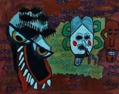 De asemenea, în cadrul seriei create de Cristian Adrian Scarlat și intitulate „Dureri”, măștile și arlechinul reprezintă arhetipuri warburgiene prin excelență. Artistul trăiește într-o metropolă dominată de mecanisme de apărare false, astfel că aceste figuri devin repere pe o hartă a suferinței și rezilienței umane, marcând locuri de traumă și vindecare pe care nicio hartă „Google” nu le poate indica.